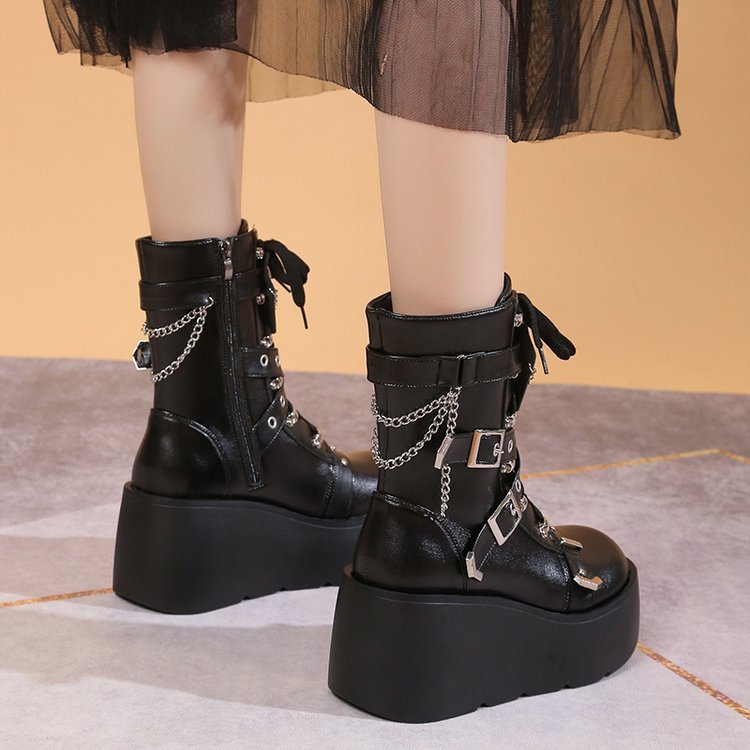 Product information: Color: white, black Shoe Upper material: artificial pu Length of socks: Middle calf Applicable Gender: Female Popular elements: rivets Size: 35, 36, 37, 38, 39, 40, 41, 42 Heel height: 9cm