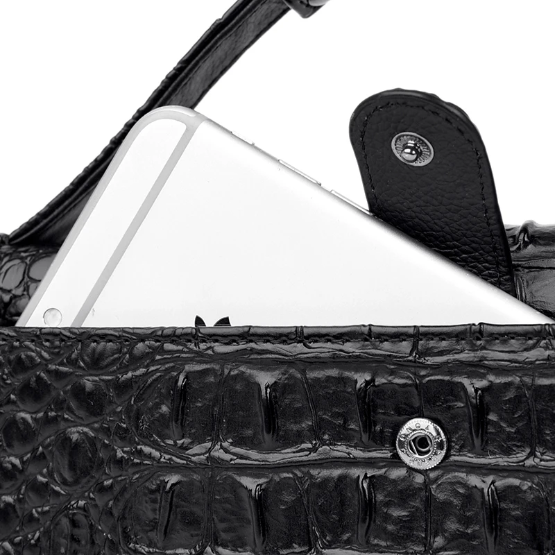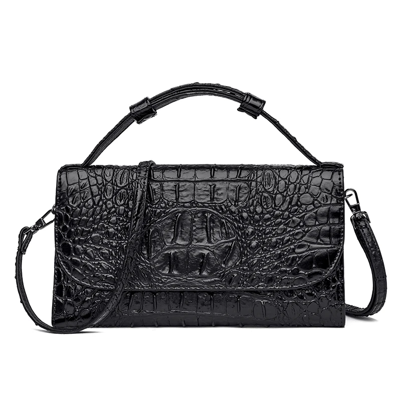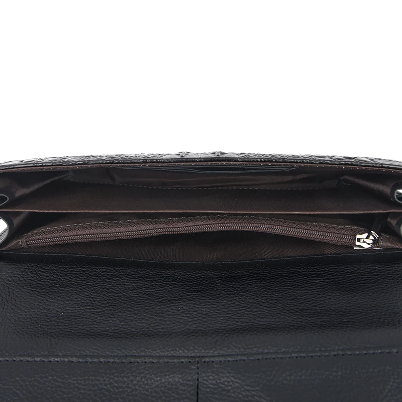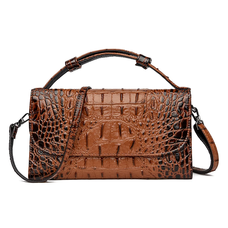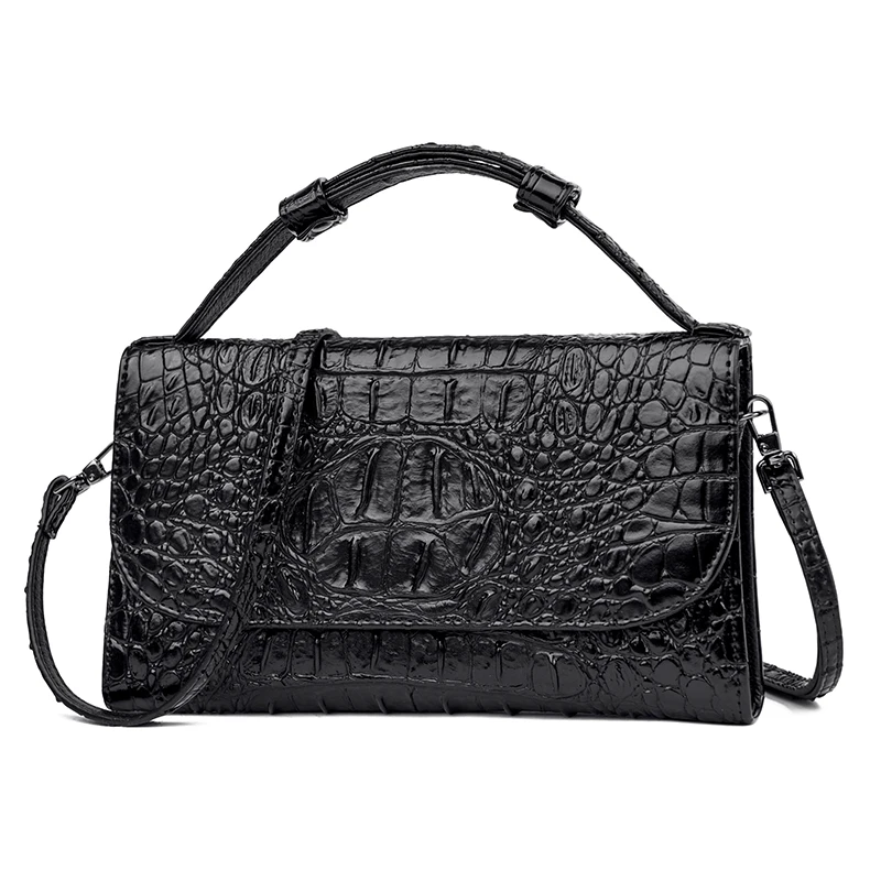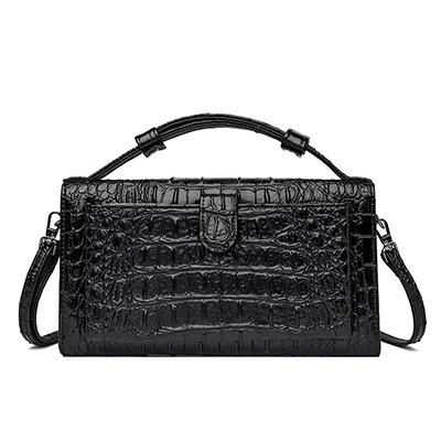 Color: red, black, brown Style: urban simplicity Material: Leather Cortical features: top layer cowhide Popular elements: stitching, crocodile pattern Bag shape: horizontal square Opening method: cover type Carrying parts: soft handle Outer bag type: inner patch pocket Strap root number: single