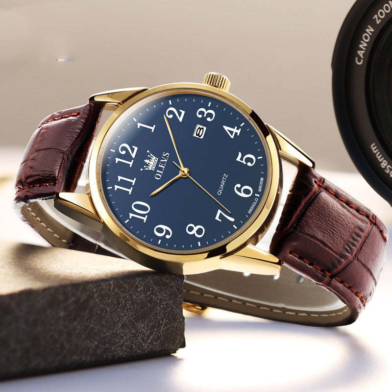 Waterproof performance: 30M Movement Type: Quartz Movement model: original quartz movement Thickness: 9mm Dial diameter: 39mm Crown type: flat-topped conical crown Back cover type: ordinary Mirror material: coated glass Buckle style: pin buckle Buckle material: stainless steel Strap Material: Leather Dial shape: round Shell Material: Alloy