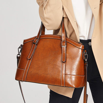 Large Capacity Genuine Leather Women's Bag With One Shoulder